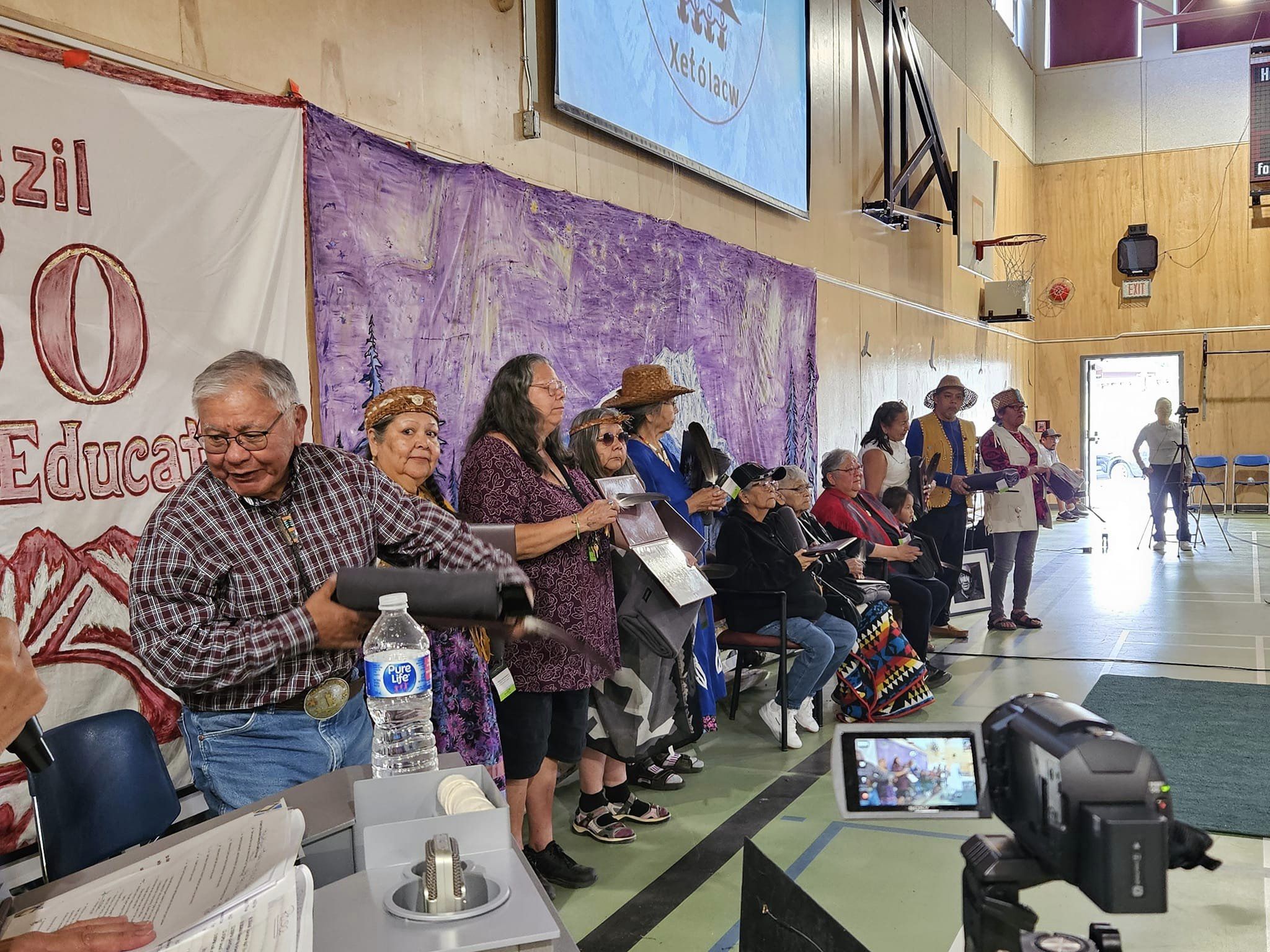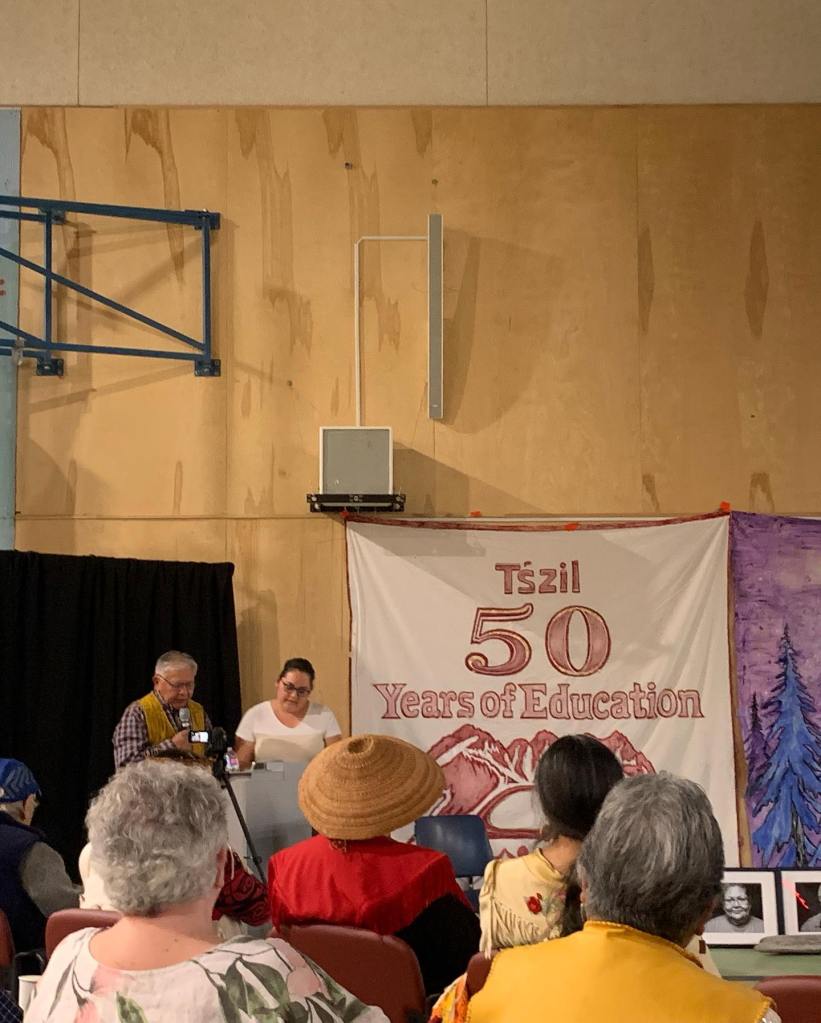 Roxanne’s sister Julia(Lispet) and Haya7 MCing the 50th celebration of the Xet’olacw Community School in both English and Ucwalmicts