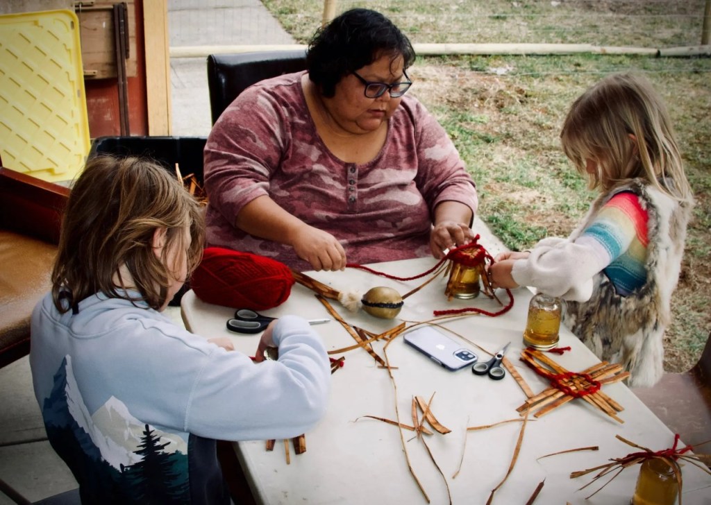 I incorporate language into my workshops as much as I can, and then when I’m working with non-Indigenous children, I incorporate words in my storytelling. I’ve worked with School District 48 for 10 years now, giving kids the skills, but also the cultural knowledge that these teachings come from to help them become the person that they’re meant to be.