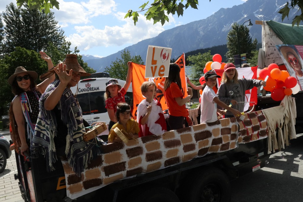 As the Executive Director of the Pemberton & District Chamber of Commerce, the Village of Pemberton (VOP) came to me and asked if I would organize Pemberton’s Canada Day Parade. I have mixed feelings about celebrating Canada Day due to our Indigenous history of colonialism and residential school, but something inside of me said to myself, “Well, maybe there is a way to make this happen and move forward in an inclusive way. Maybe there is a way I can try and connect people in the surrounding communities, and perhaps I can use this opportunity to help people learn more about the land of the Líl̓wat people.” “