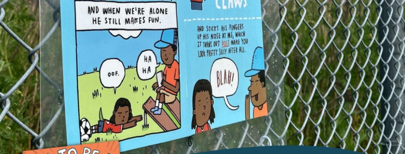 Pemberton’s latest offering has popped up on the fencing en route to One Mile Lake, from the corner of Vine Road, towards Underhill Park, thanks to permission from the Lil’wat Business Group, funding from the Whistler Pemberton Literacy Partnership, and permission from Penguin Random House to use the story. And thanks most of all to the team of all-stars at the Pemberton & District Public Library, who know that we need to take our reading outside during the flying summer months, and so, have hatched a host of ways to help us maintain our literacy love, from a grown-up Literacy Bingo, to Summer Reading Club, to gorgeous chalk-art appearing around the community centre (Molli Reynolds as our very own Banksy), pop up family story times at Pioneer Park, and more. To keep track of all their awesome offerings, or find a good book recco to go with your summer vibes, follow the library on instagram at @pembylibrary and/or sign up for their monthly newsletter so you don’t miss a trick.