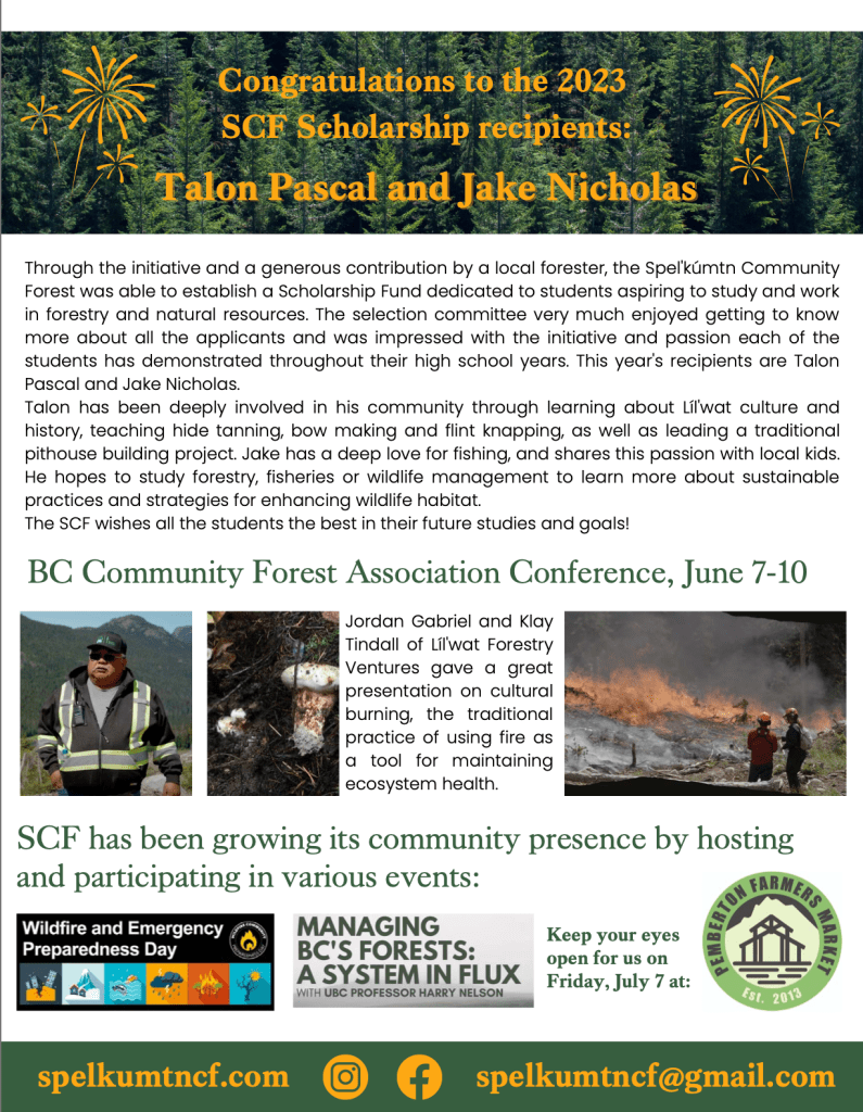 According Líl’wat Nation CAO Kerry Mehaffey, “the intention of the Spel’kúmtn Community Forest was always to create direct benefit for the communities.This initial distribution demonstrates how collaboration can benefit both communities and we are extremely excited to see the Partnership Project Fund grow to create a larger scale legacy project.”