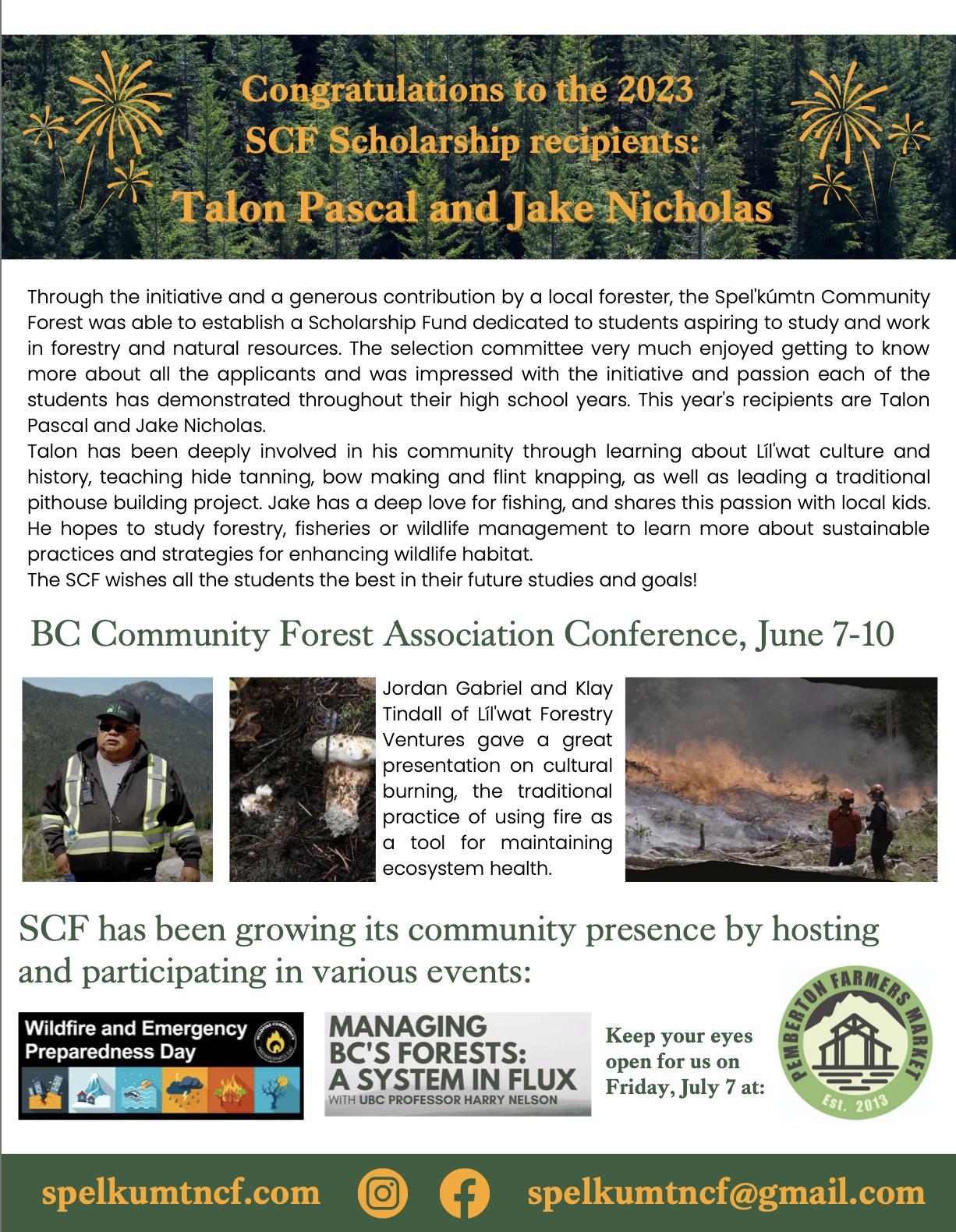 On the topic of newsletters (yesterday we shared that the SLRD has a new monthly email newsletter, and on Friday we encouraged y’all to sign up for the Pemberton & District Library monthly newsletter), Speĺkúmtn Community Forest has also issued a summer newsletter, which is the way to make sure we are defending ourselves in the smallest way from Rupert Murdoch, and Facebook and Twitter’s egomaniacal owners, and their ongoing assault on democracy by controlling all our access to information, and selling our attention spans to the highest bidder (whether they’re ethical or honest or fact-checked or not.)