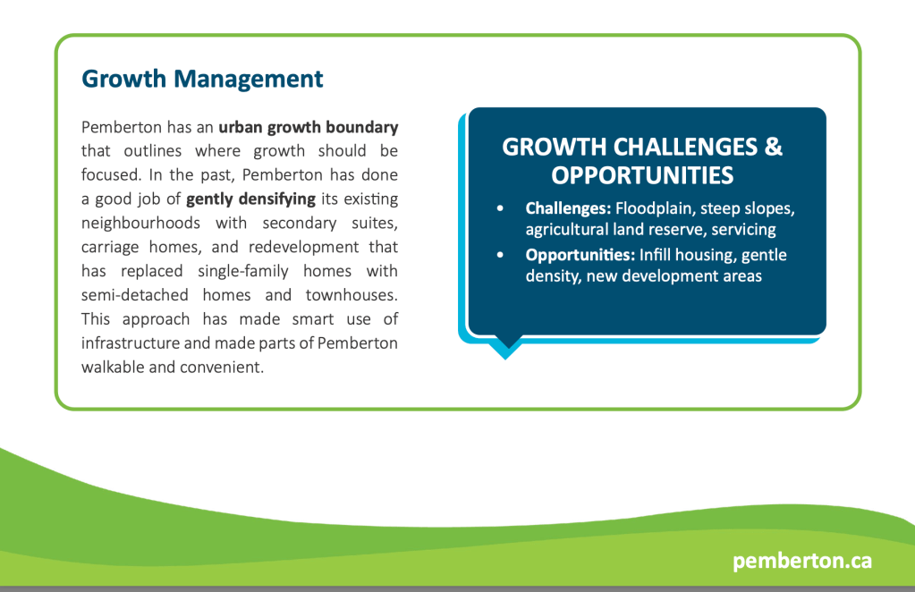 - Growth management is the biggest challenge facing Pemberton over the next 25 years.