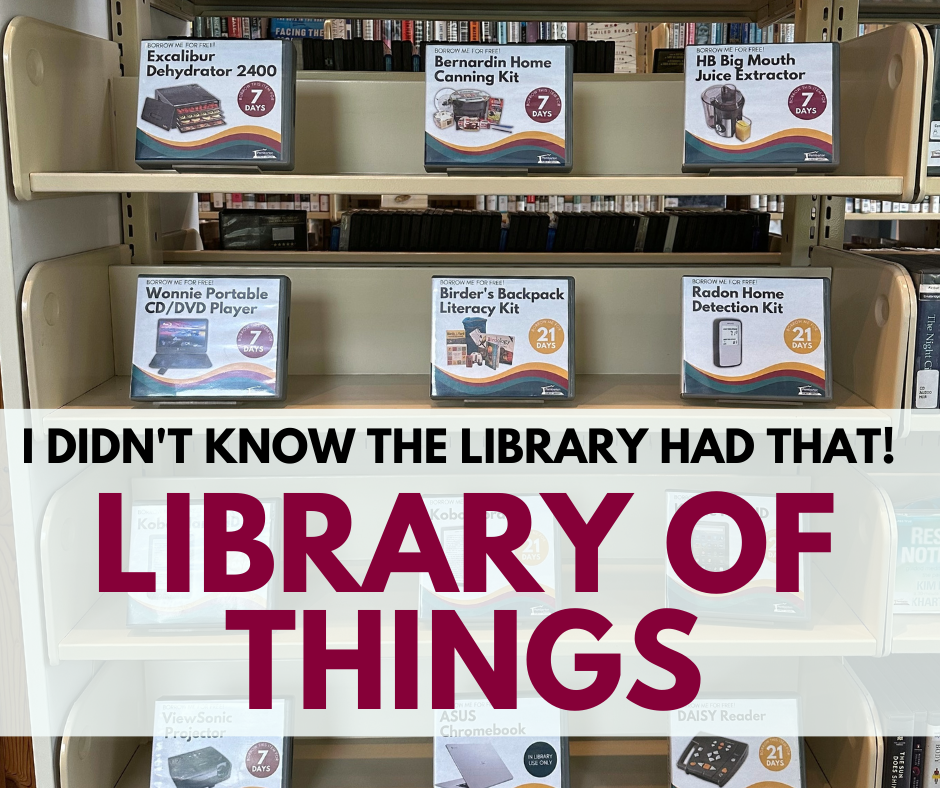 | What is a Library of Things? A Library of Things is a collection of non-traditional library items available for Pemberton & District Library patrons to borrow for free. What kind of things can I borrow? You can borrow eReaders, Literacy Kits, Portable DVD players, Radon Detection Kits, kitchen equipment and more.. Check out our full list here! How do I borrow an item? Browse our Library of Things list from homeand place a hold on an item you’d like to borrow. Or visit the library and check out our new Library of Things display in the lounge. Bring the item you like to borrow to our Information Desk and a staff member will check out the item for you or place a hold on it, if it is currently checked out. How long can I borrow an item? Loan periods are different for each item, check the front cover for the loan periods of the item you would like to borrow. You may be able to renew your item, as long as no one else it waiting for it. How do I return an item? Return the item at our Information Desk and a staff member will check in the item for you. I wish they had… If there is an item you would like us to add to our Library of Things please mention it to a staff member. |
