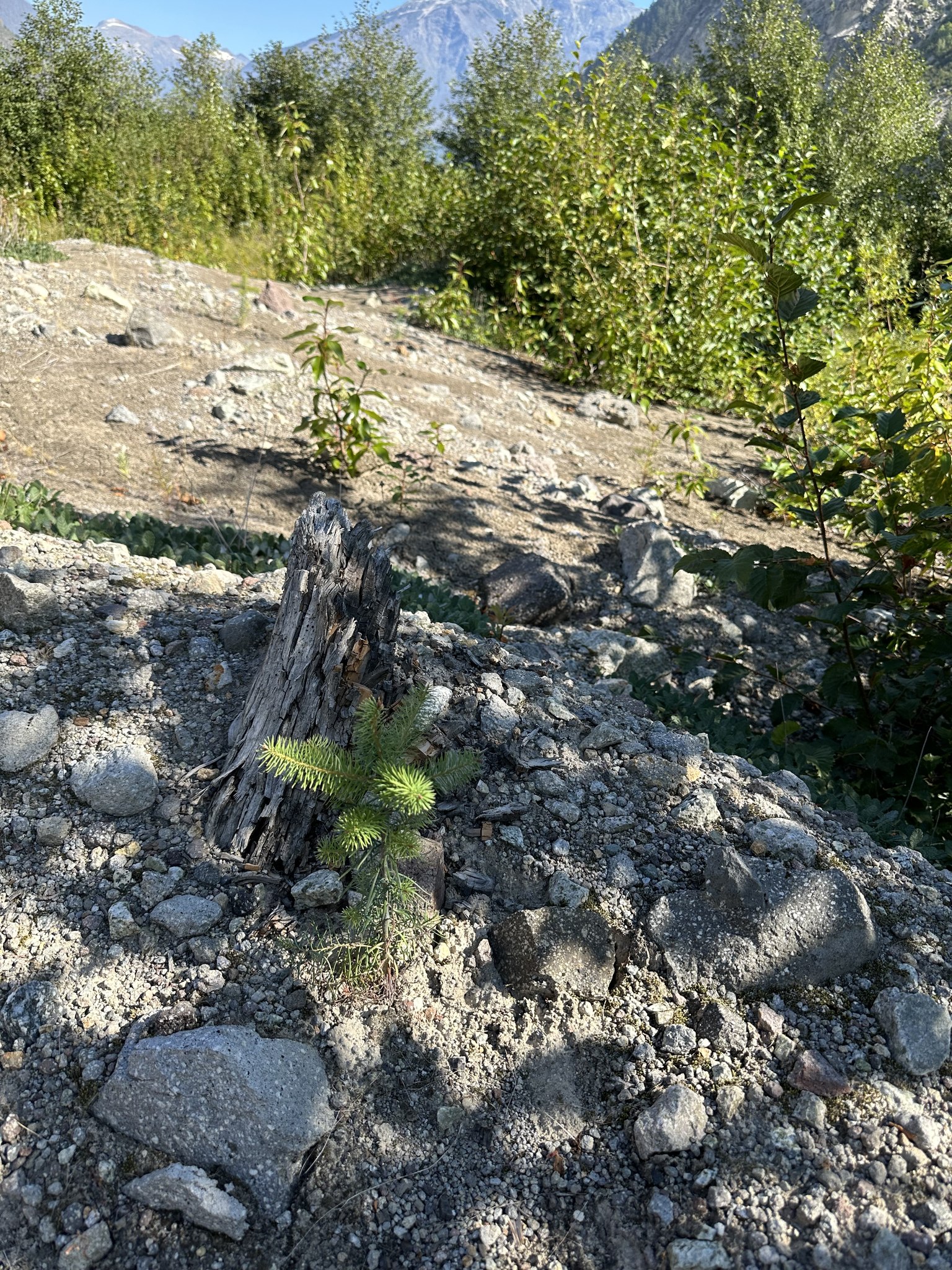 The landslide site was mostly inaccessible all summer due to high temperatures which increase landslide risk, but we finally got to site September 8 to get the first look at survival.
