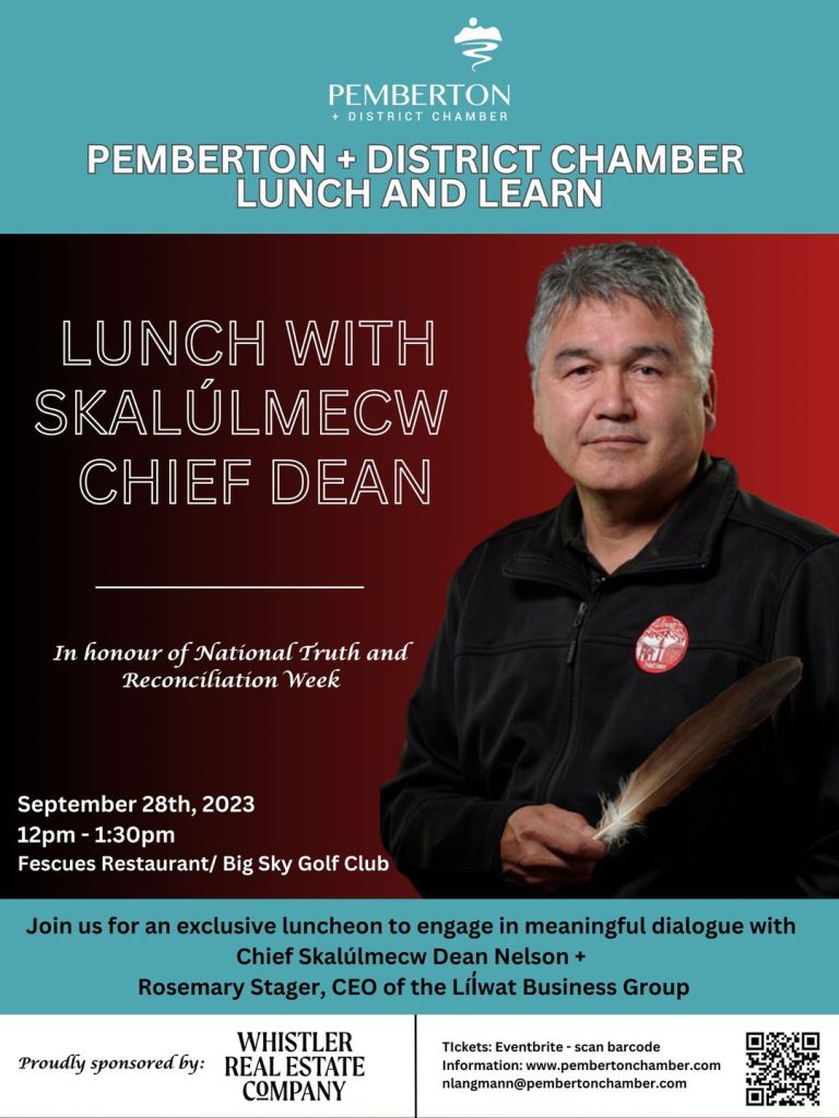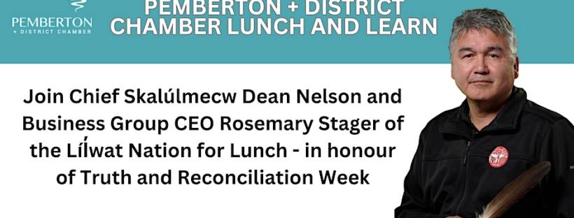 The promise of a delicious lunch at Fescues, at the Big Sky Golf Course, and to hear from Chief Skalúlmecw Dean Nelson and Líl̓wat Business Group CEO Rosemary Stager, was an invitation that Chamber members jumped on, with Thursday’s Lunch and Learn to honour National Truth and Reconciliation Week selling out.