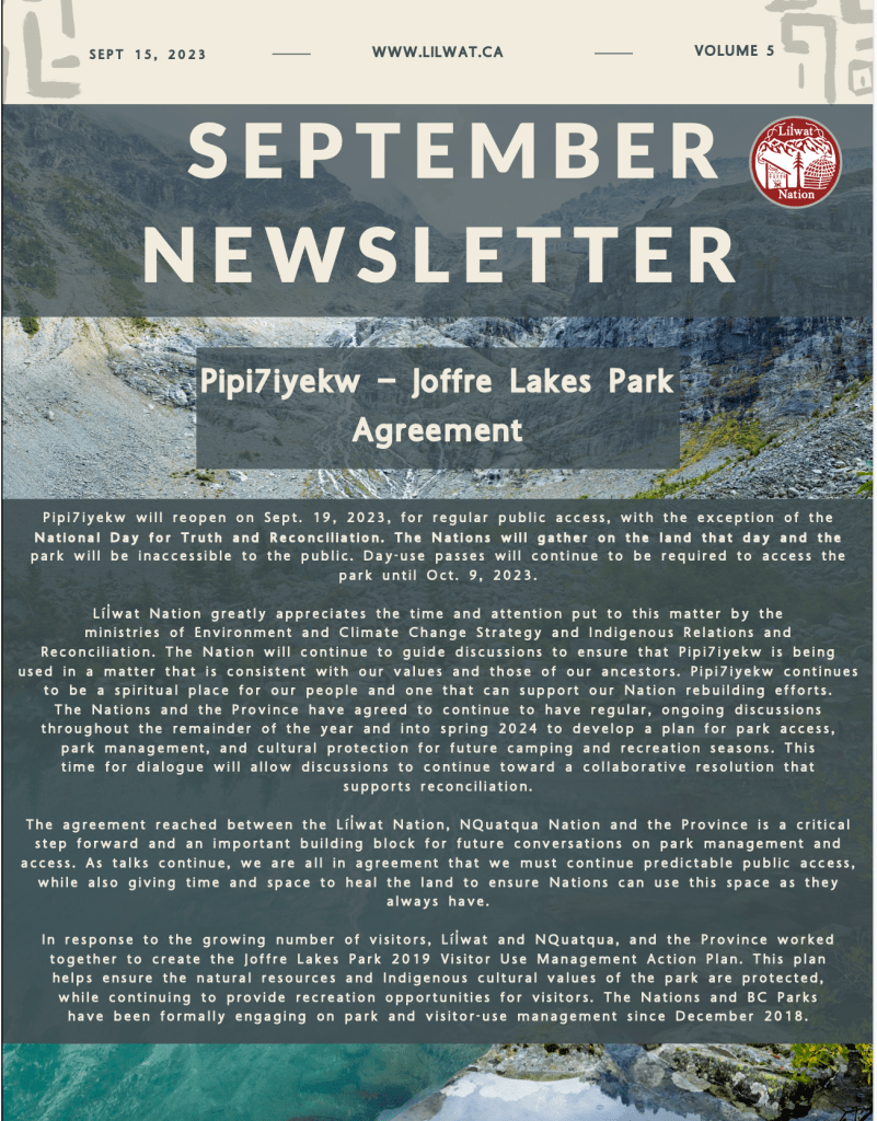 While the Nations negotiated with provincial ministries of Environment and Climate Change Strategy and Indigenous Relations and Reconciliation, and shortened the month-long closure, the closure for today, to acknowledge Truth and Reconciliation Day remains in place.