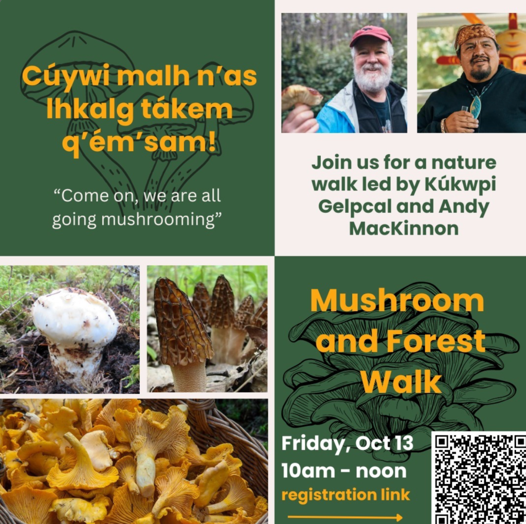 Spel’kúmtn Community Forest is hosting a mushroom walk on Friday, October 13, from 10am – noon.