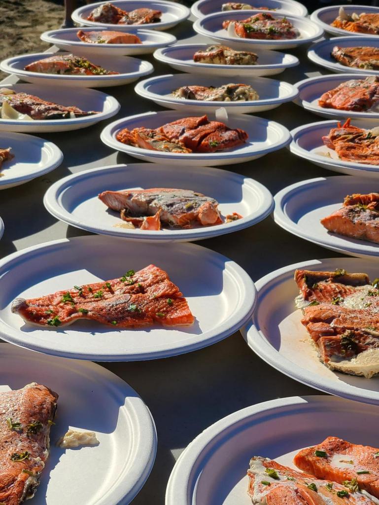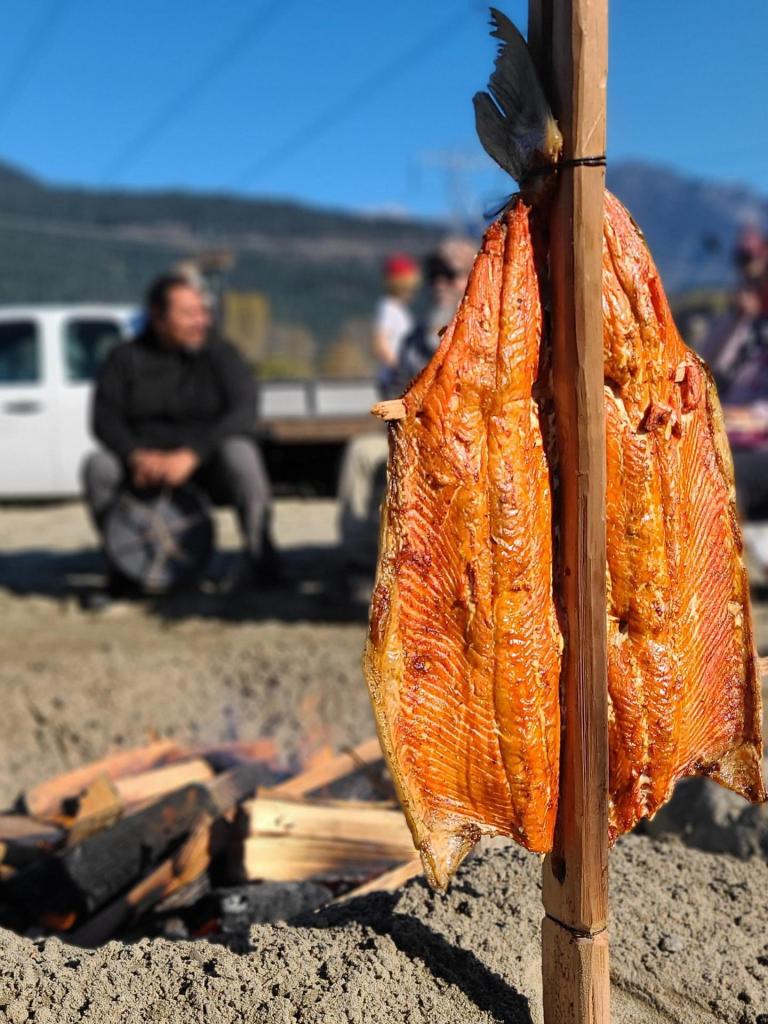 It was beautiful to be there, under the bright sky and the Great Witness of Ts’zil, to be sharing food and sharing culture. I was standing among other parents, many of us who were born on other lands – Australia, Mexico, Japan, England, the US, other parts of Canada – and I was standing among people who were born here, who are Lil’wat, who are N’Quatqua. I was there because some people were willing to get up at 2am and build a pit and tend a fire and keep the fire-keeper Normal Wallace company. Because some people (Kathy and Mark Leverton) split the wood and brought it from Continental Pole. I was there because some people have been volunteering at the Signal Hill Elementary Garden to weed and build boxes, and gift seeds and plants. I was there because Tanina Williams is always looking for ways to share culture, lift up culture, create a beautiful future, provide healing, bring kids into their truth and power. I was there because Claire Fuller is an ally who listens and then writes grants, and because Lisa Vertefeuille gave her energy and time and brilliance to being the guru of the garden and the chef of the pit, and because principal Krista Brynjolfson is wild and wonderful enough to support projects like this. And I was there because of the immense generosity of Kukpi (Chief) Gélpcal Joseph, Heather Joseph, Barry Dan, Leah Dan, Tanina Williams, Fran Thevarge, who share culture and song and drumming and wise words, in ways that speak to the heart and that are meant to bring people together, and in divisive times, this is something we should cherish.