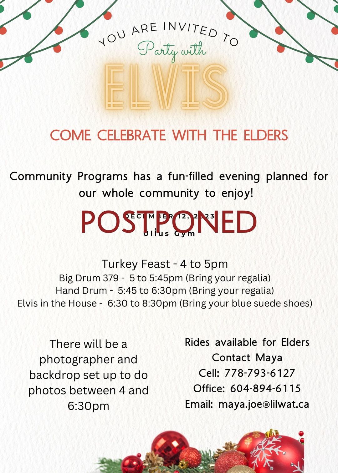 Update: Please note that Lil’wat’s Elders gathering has postponed to follow cultural protocol following a passing in the community. Next week, enjoy Elvis with the Elders on Tuesday and grab tickets for a solstice concert on the 21st at the SLCC.