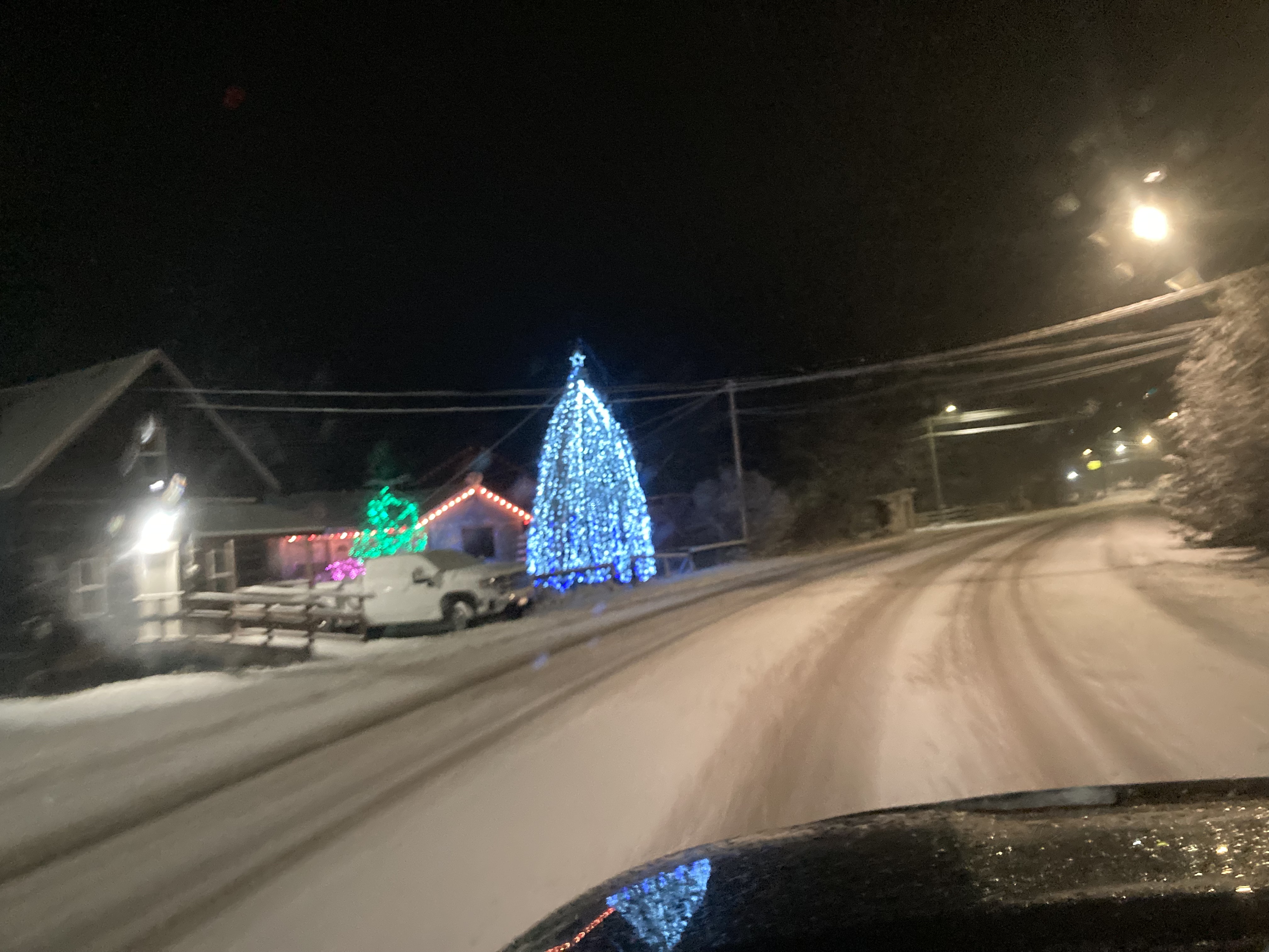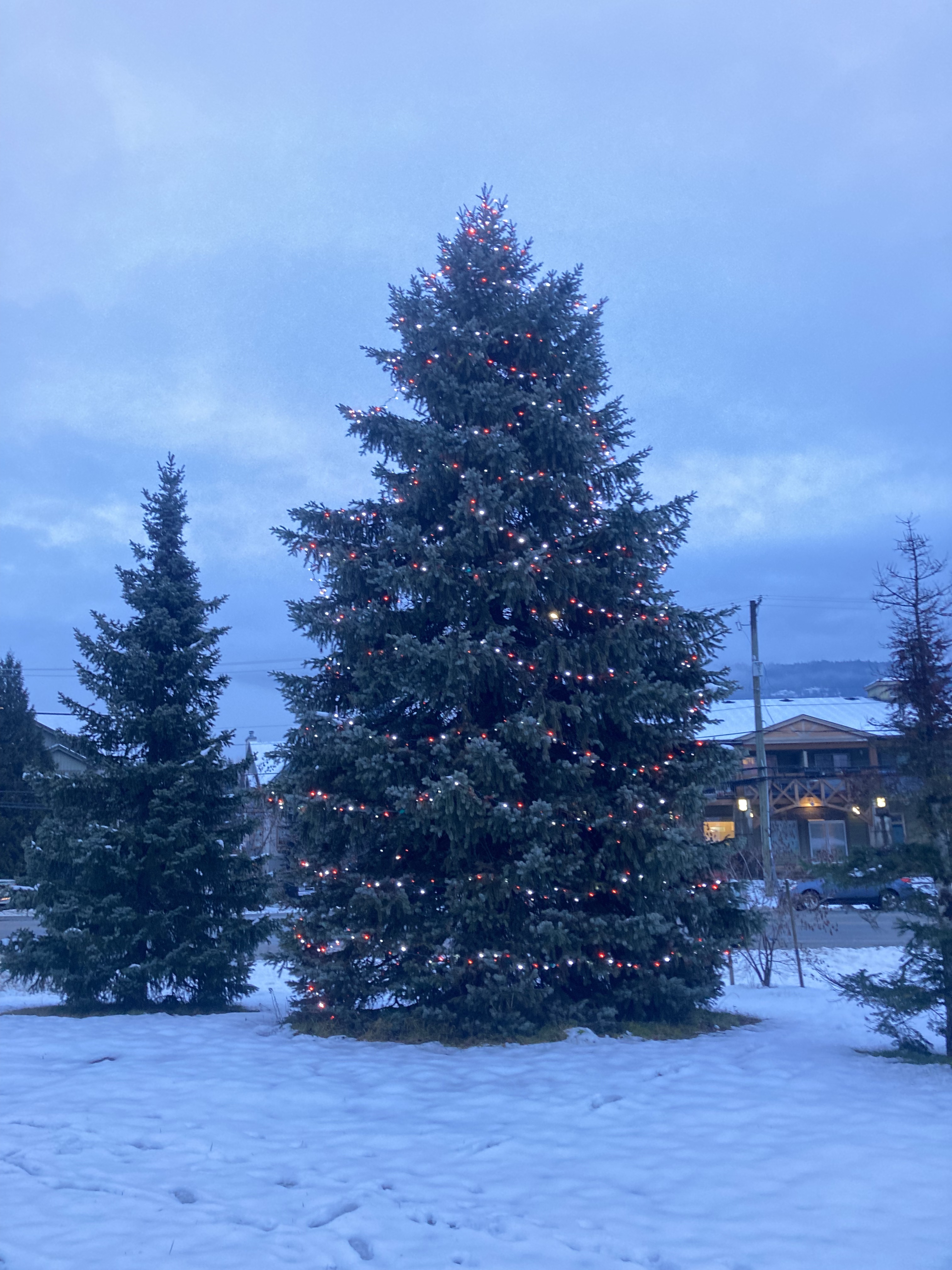 Sometimes it’s hard to live down the road from Whistler… they have budgets for Christmas lights that probably transcend our town’s entire year-long landscaping and snow clearing budget… But I wonder whether that makes people complacent, overly reliant on services and contractors, if that assumption of services being taken care of, can possibly impoverish community a little bit? Because, the Charlie Brown tree-lover in me, is so delighted by the local initiatives here in our wee under-resourced communities, to bring joy and sparkles and light, at this time of deep dark and honouring the return of the light…