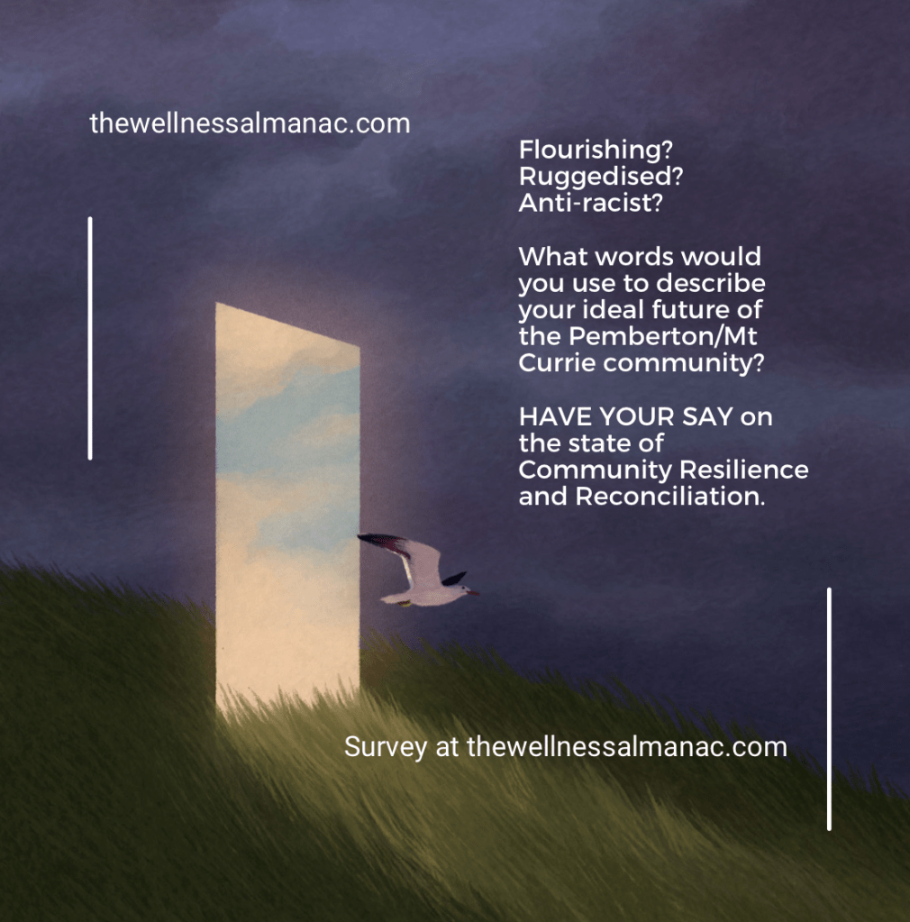 I brainstormed a personal vision – that the work of the Wellness Almanac, and whatever might follow this, would help us move towards a future state where we are