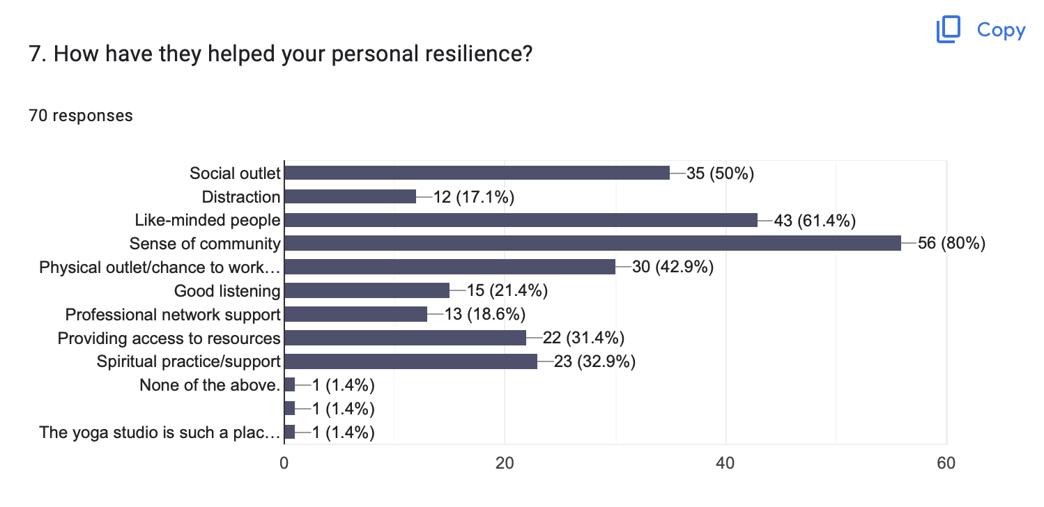 Community Survey Question 7: How have community organisations helped your personal resilience?