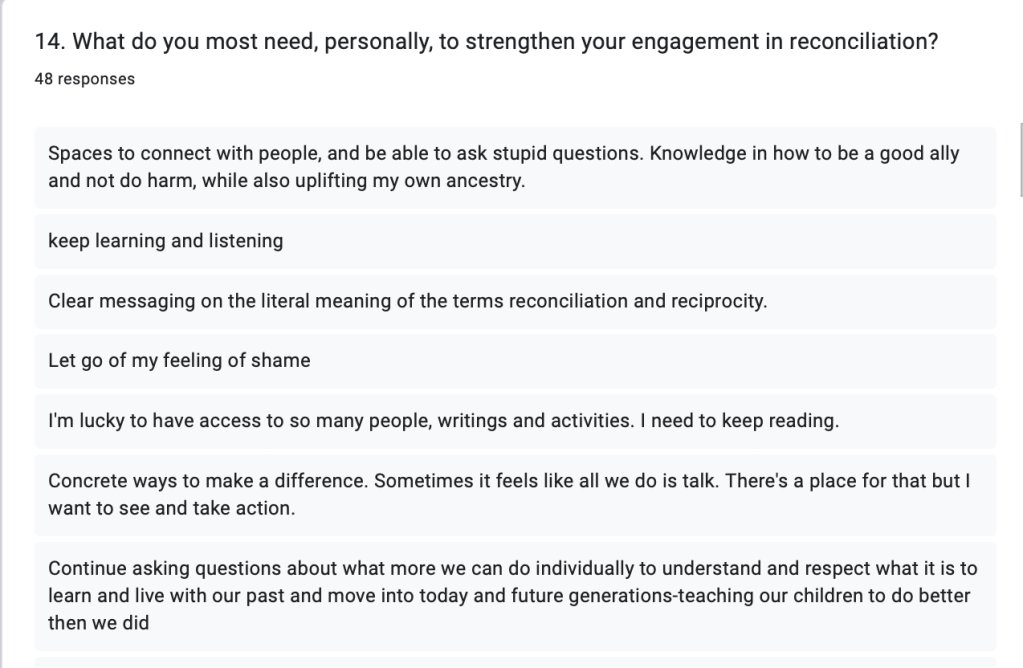 What do you most need, personally, to strengthen your engagement in reconciliation?