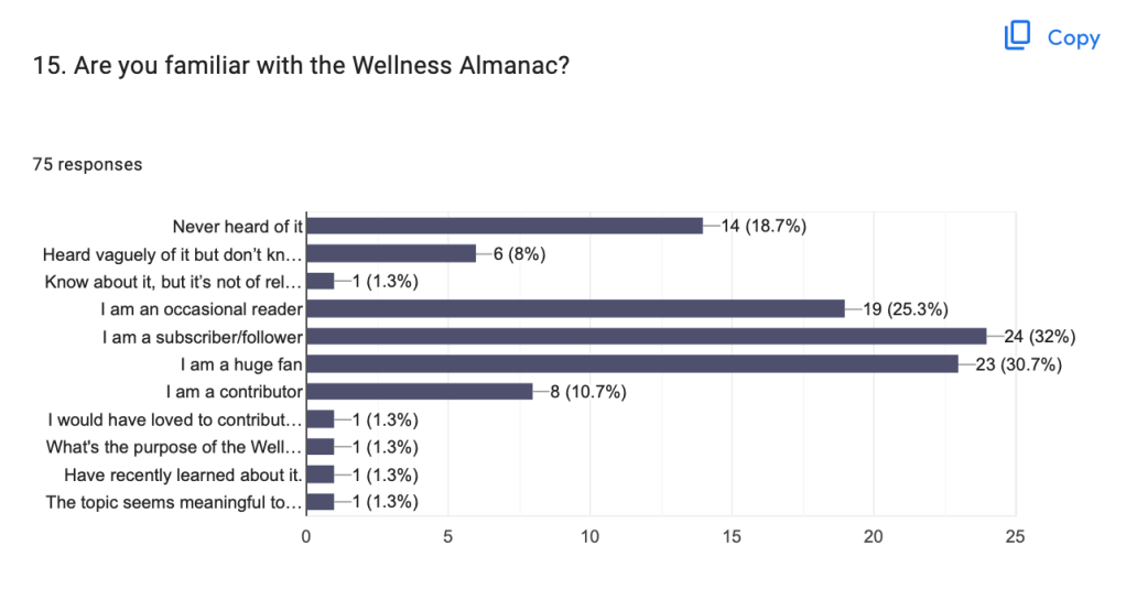 The questions we asked about people’s familiarity with the Wellness Almanac, and how they’d rate it’s contribution to their resilience and engagement with truth and reconciliation were primarily to assess how wide we had managed to disseminate the survey… was it just regular readers and fans? Thanks to the help of the Lil’wat Nation and SLRD in spreading the word through their Facebook pages, we had survey respondents who’d never even heard of the Wellness Almanac, who only vaguely knew about it, who were occasional readers, who were huge fans, who were contributors. The answers also helped me in this stepping-aside transition – if it’s not reaching everyone, or serving everyone, are there better ways these resources could be allocated? It’s time to consider what they are.