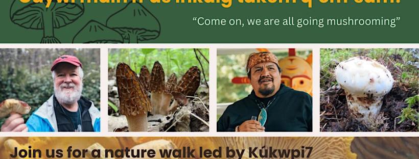 Come talk mushrooms with Kukwpi7 Gelpcal and Andy MacKinnon, Friday Oct 13, 10am – noon