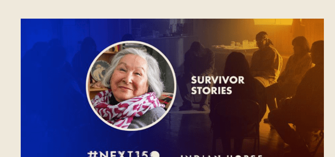 The most recent challenge offered up by the Indian Horse Next150 Challenge comes from Edna Manitowabi who played the role of “Naomi” in Indian Horse. Edna Manitowabi, Anishnaabekwe, is Bear Clan, a Grandmother, and Great-Grandmother of Ojibway/Odawa ancestry originally from Wikwemikong, Manitoulin Island. Edna's Challenge “I challenge you to listen to, watch, read, and share … Continue reading This Orange Shirt Day, listen to Survivor Stories