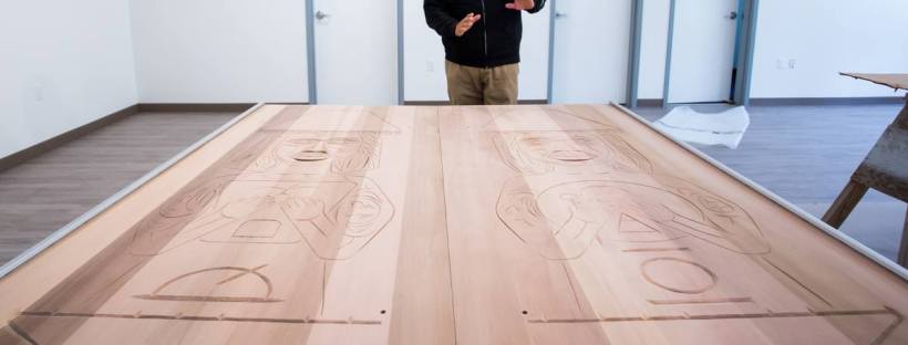 Thanks to Murphy Construction for documenting this process and allowing us to share it here. As friends commented, this work is a gift to future generations. To glimpse back at the earlier form of the doors, see the original sketch, and the work at the half-way point. As Ashley Gélpcal Joseph completed his carvings on the … Continue reading The work is complete: Ashley Gelpcal Joseph’s entry doors for the Ts’zil Learning Centre
