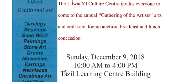 Saturday, December 15: The Lil’wat7ul Culture Centre “Gathering of the Artists”, highlighting the work of Lil’wat artists who continue to practice the arts and crafts of their tradition, 10 a.m. – 4 p.m. at Ullus Community Complex. Saturday, December 15: Crafty By Nature, Pemberton’s Holiday Market featuring local artisans, jewellers, and exceptional handmade art and … Continue reading Craft Fairs Today!