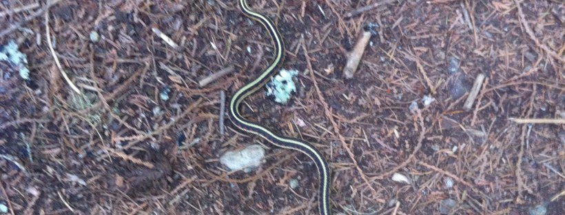 Ran into this little fella (but not over him) riding on the trails around Mosquito Lake on Saturday. Snake expert, Leslie Anthony, identified him for us as a Valley Gartersnake (Thamnophis sirtalis fitchii), a subspecies of the Common Gartersnake. The lowly Garter Snake plays an important role in energy transfer from aquatic to terrestrial ecosystems. Hence, anyone … Continue reading Seasonal Observation: Valley Gartersnake