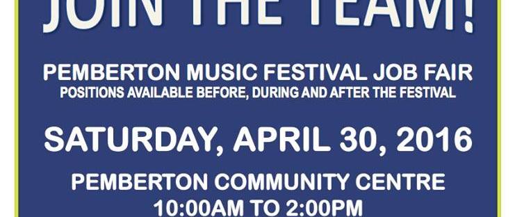 If you don't have cash, you you do have time and energy, this might be your ticket to the Pemberton Music Festival. Volunteer Coordinator Stephanie Nicoll is hosting a recruitment fair for Pemberton and Whistler Grade 11 and 12 students. You have to apply in person and be available for a post-festival shift on July … Continue reading Local Youth – Volunteer for the Pemberton Music Festival to Earn A Fest Ticket, Hiring Fair, June 10, 3:30pm