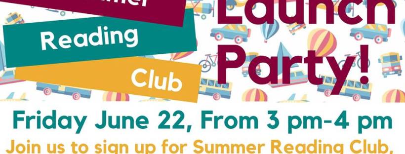 Summer Reading Club Launch party at the library, Friday June 22, 3-4pm