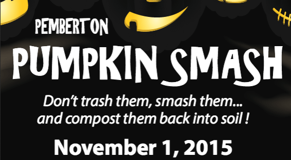 Don't trash your Halloween pumpkins - compost them back into soil to grow more pumpkins! Come check out the Pemberton Pumpkin Smash happening from noon until 3:00 p.m. at the Pemberton BMX Track (across from the Community Centre). Bring your halloween pumpkin to the Pemberton BMX track Sunday November 1 between noon and 3pm. Pumpkins will … Continue reading Pemberton Pumpkin Smash is happening today, noon – 3pm, at the Pemberton BMX Track