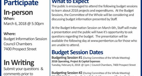 Village of Pemberton Budget Process invites your feedback